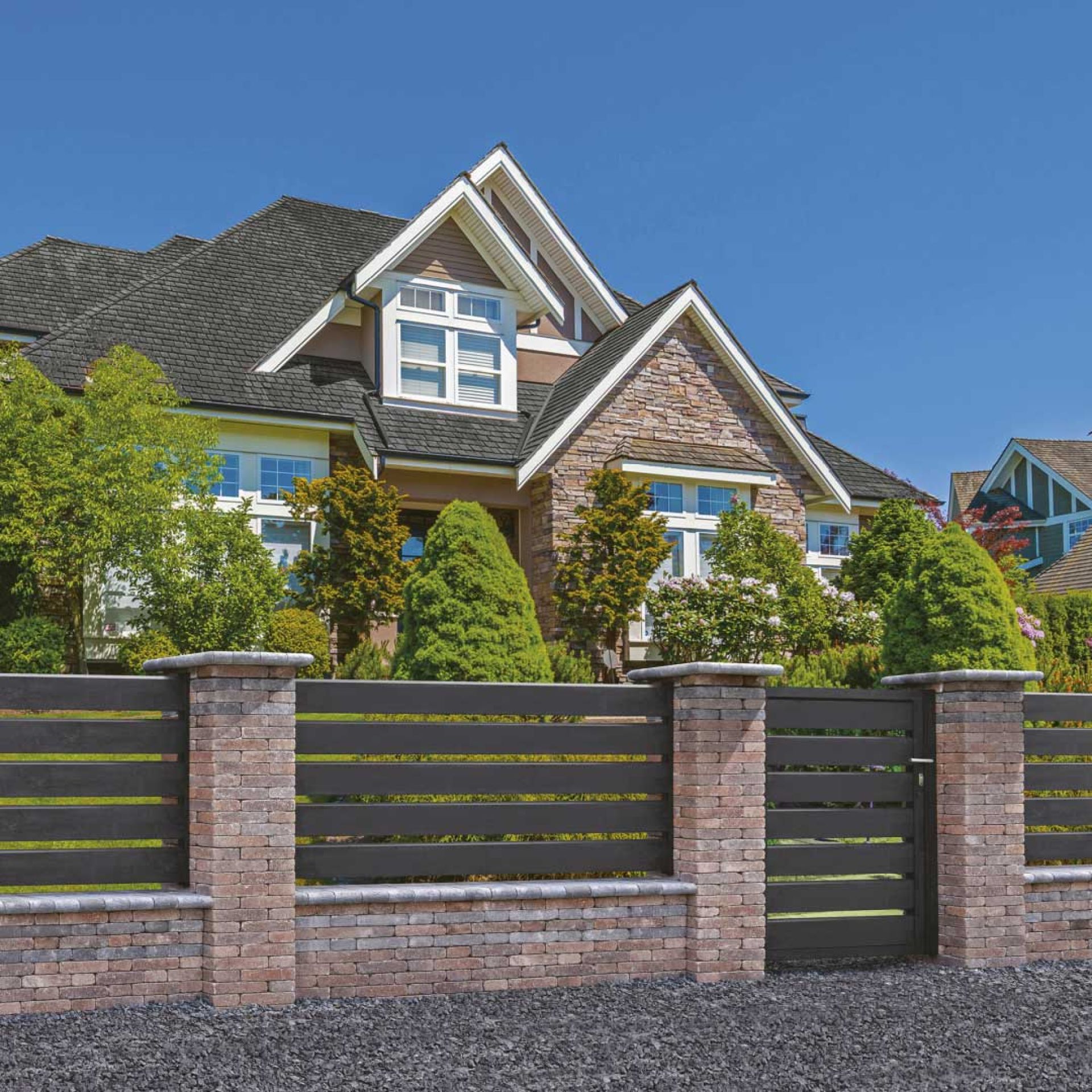 Téglakőből gyönyörű kerítések építhetőek, ezért az időigényes és költséges hagyományos építési mód (helyszíni összeállítás) kiváltására megalkottunk egy olyan előregyártott kerítésrendszert, amivel ezek a hátrányok kiküszöbölhetőek.
